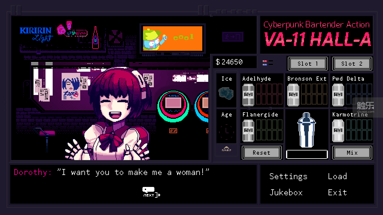 如你所見(jiàn):就算是在Playism提供專(zhuān)業(yè)翻譯團(tuán)隊(duì),雙方就此密切合作的情況下,《VA-11 Hall-A》的日文版還是沒(méi)有發(fā)售,這就引出了只要談到這款游戲,終究無(wú)法回避的話(huà)題:說(shuō)好的官方中文版進(jìn)展如何?